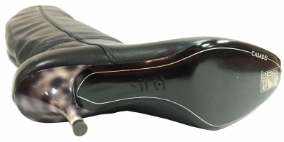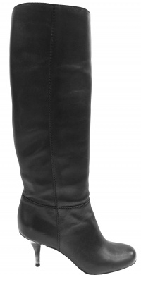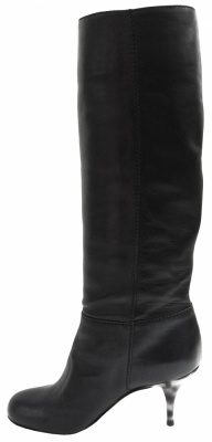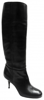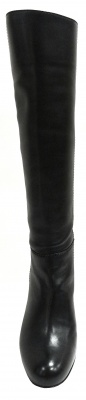 Удобные, модные демисезонные сапоги-"трубы" (без молнии) из мягчайшей натуральной перламутровой кожи черного цвета, на подкладке из натуральной кожи в союзке и вискозы в голенище, на среднем каблуке и кожаной подошве.
