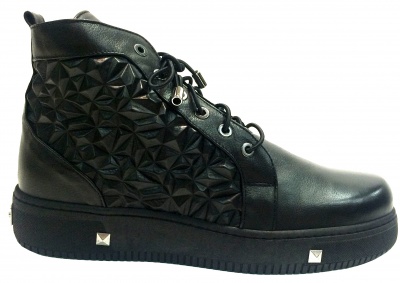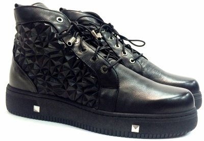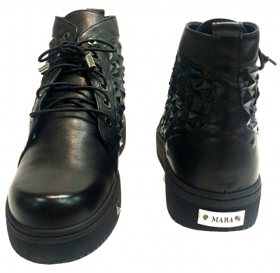 Ботинки из натуральной кожи черного цвета, с подкладкой из натуральной кожи, на эластичных шнурках, на толстой полиуретановой подошве-платформе. Благодаря эластичным шнуркам, ботинки можно надеть, не развязывая их.