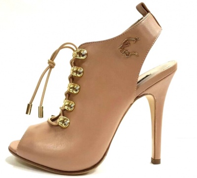 Изящные удобные босоножки из натуральной кожи с фурнитурой золотого цвета на высоком каблуке