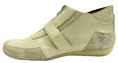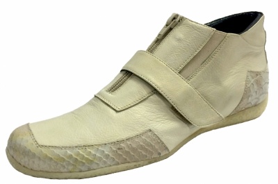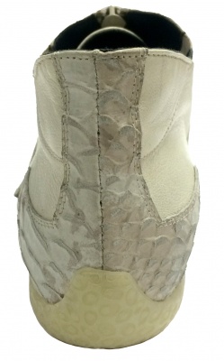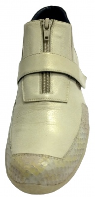 Кеды из натуральной кожи кремового цвета, с отделкой мыска и пятки натуральной кожей с выделкой под кожу питона, на кожаной подкладке, на полиуретановой подошве.